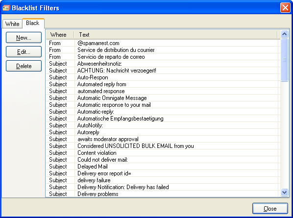 Black filters allow you marking messages for deletion automatically. White filters allow you preventing from important messages deletion.